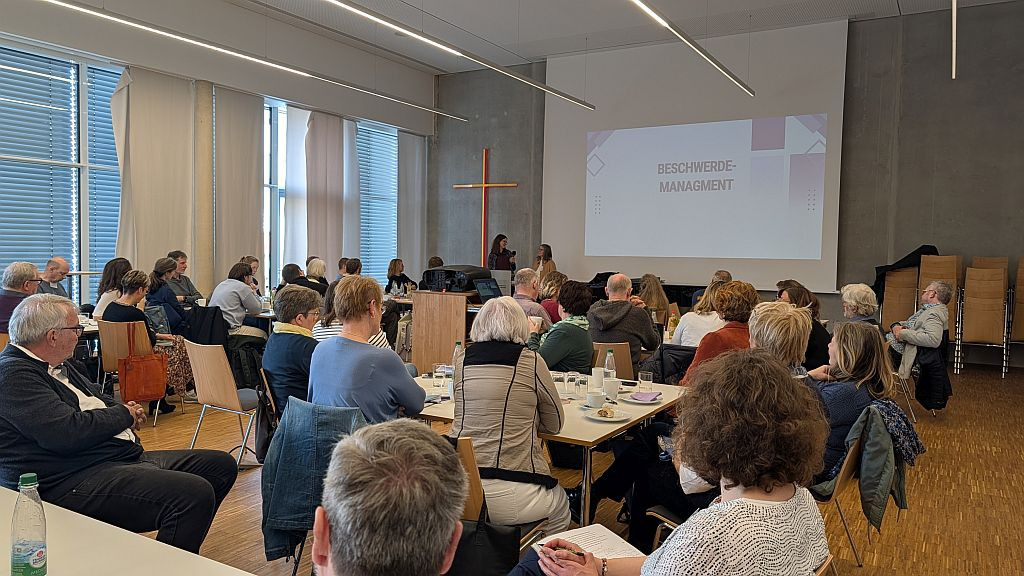 Im Anschluss präsentierte Dekan Bernhard Petry den Bericht der beiden Dekanspersonen. In diesem Jahr setzte der Bericht über die laufenden Transformationsprozesse in der gesamten Landeskirche ins Bild. Angesichts sinkender Mitgliederzahlen und Einnahmen unterstrich er die Notwendigkeit einer verantwortungsvollen Konsolidierung sowie einer klugen strategischen Weiterentwicklung. Die darauffolgende offene Fragerunde bot Raum für Transparenz und das Erkennen chancenreicher Perspektiven, bevor Dekan Petry den intensiven Vormittag mit einem hoffnungsvollen Ausblick auf die Jahreslosung „Gott spricht: Siehe, ich mache alles neu!“ beschloss. Er ermutigte die Anwesenden mit den Worten, dass es in der Bibel eigentlich immer um den Aufbruch und die Bewegung hin zu einer Welt gehe, wie Gott sie gewollt habe, und betonte: „Wir müssen davor keine Angst haben.Erneuerung gehört zu uns, schon immer. Gott ist mit uns auf dem Weg.“